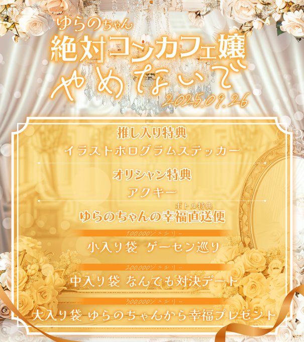 中西ユラノ@kurage_yurano_·9月25日怒涛の10連勤が終わって死んだように寝てました( ᜊ°-° )ᜊ 遂に明日に迫って来ました🥲 明日来てくれるよー!って人時間だいたいでいいので教えてください〜‼️引用海月🪼-秋葉原コンカフェ-@kurage_concafe·9月18日。o♡o。+。o♡o。+。o♡o。+。o♡o。 ゆらのちゃん 絶対コンカフェ嬢やめないで ~幸福直送便~ 。o♡o。+。o♡o。+。o♡o。+。o♡o。 2025.09.26 特典盛沢山・・・!!! 年に一度の生誕祭💗絶対に祝いに来てください! 詳細はバナーをチェック✅2101,330