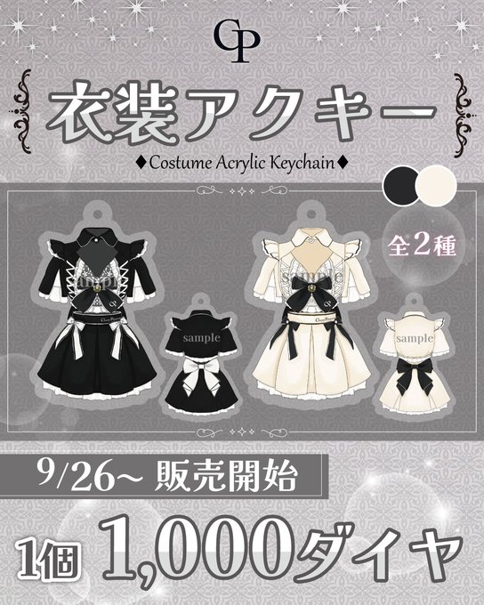 ふらねちゃんです@cp_furane_·9月25日えほしーかわいー引用Classy Princess👑秋葉原コンカフェ(16:00~25:00)@cp_akb·9月25日——♡——————————–♡—— 🎀クラプリ衣装アクキー登場🎀 ——♡——————————–♡—— クラプリ1周年を記念して、 【クラプリ衣装アクキー】が登場🏰✨ 9/26~店舗にて販売開始❣ 全2種/1個1,000ダイヤ 販売をお楽しみに💖 絶対GETだよ~✨ #クラプリ #コンカフェ #コンセプトバー2782