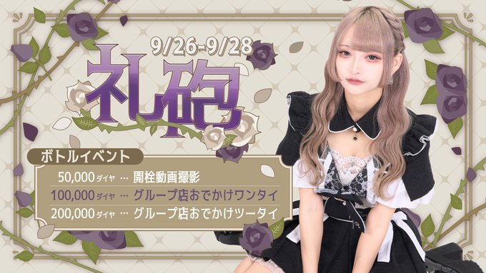 ふらねちゃんですさんがリポストClassy Princess👑秋葉原コンカフェ(16:00~25:00)@cp_akb·─── .✦. ─── 礼砲 9/26-9/28 ─── .✦. ─── 1周年の感謝を込めて……✨ 期間中はボトル開栓で豪華な特典🍾💕 気になる内容はバナーをチェック🌹 #秋葉原 #コンカフェ #コンカフェ営業22691