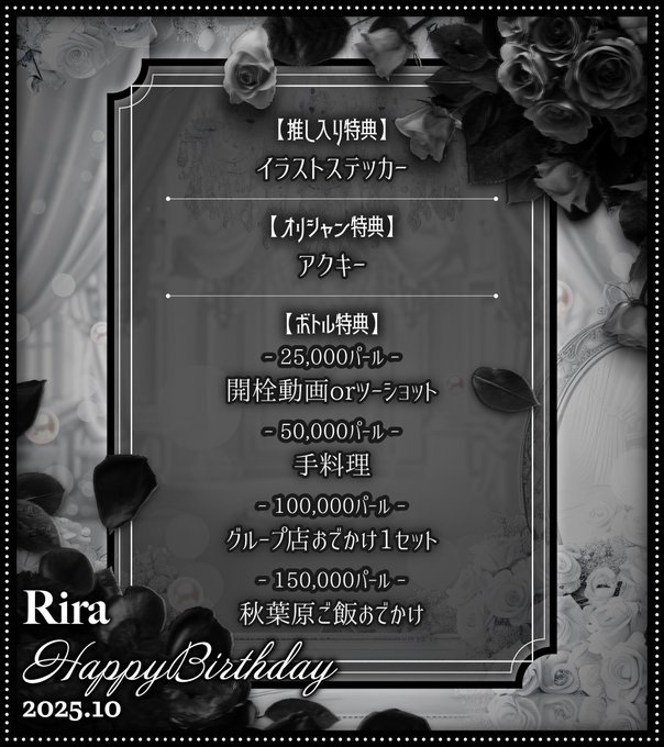 りら まーめいど@mermaid_rira__·3時間オリシャン届きました!♡♡ 鬼かわいいです!!! 沢山あるので皆さん協力してください😿💕引用りら まーめいど@mermaid_rira__·9月5日皆さんにご報告があります 10月月間で生誕をやらせて頂くことになりました❣️ オリシャンは2種類用意させて頂きました♡ どちらも25000パールです♡ 卸して下さる方DMください!!ボトル特典もあります!♡ 少し顔を出してくれるだけでもとっても嬉しいので沢山待ってます🎀6395