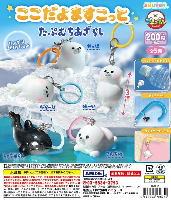 すいすい@suisui_chama·20時間?!!!引用アミューズ AMUFUN カプセルトイ【公式】@AMUSE_capsule·9月23日🌟9月新商品情報🌟 『ここだよますこっと たぷむちあざらし』200円 たぷっとむちっとしたあざらし🦭🦭🦭のマスコットが登場🌈なんだか癒されます☺️ リングつきなので傘の柄🌂にもつけれるよ👍 9月24日(水)~順次発売🚚💨 #AMUFUN #カプセルトイ #アミュポン #あざらし1106