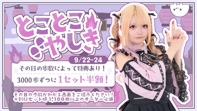 ひなもち@reijo_hinamoti·2時間います16➰ 予定ないのでたすけてꧦ𐅁𐀸𐋠𛰙᭜𖫴𖫰𖫱𖫳𖫲𖫲𖫳𖫴𖫰𖫱꛰ﯩᩝ︪᭜𖫴𖫰𖫱𖫳𖫲𖫲𖫳𖫴𖫰𖫱꛰ީᩝ𛰚引用【秋葉原コンカフェ】幽遊屋敷〜霊女編〜(16:00〜25:00)@uuyashiki_girl·9月22日︾︾︾︾︾︾︾︾︾︾︾ とことこやしき👣 9/22-24 ︾︾︾︾︾︾︾︾︾︾︾ いっぱい歩くほどお得に⁉️ 3,000歩ごとに👻1セット半額👻 ※その日の歩数が分かる画面を提示必須 ※割引セット時1,000怨以上のワンオーダー必須2134