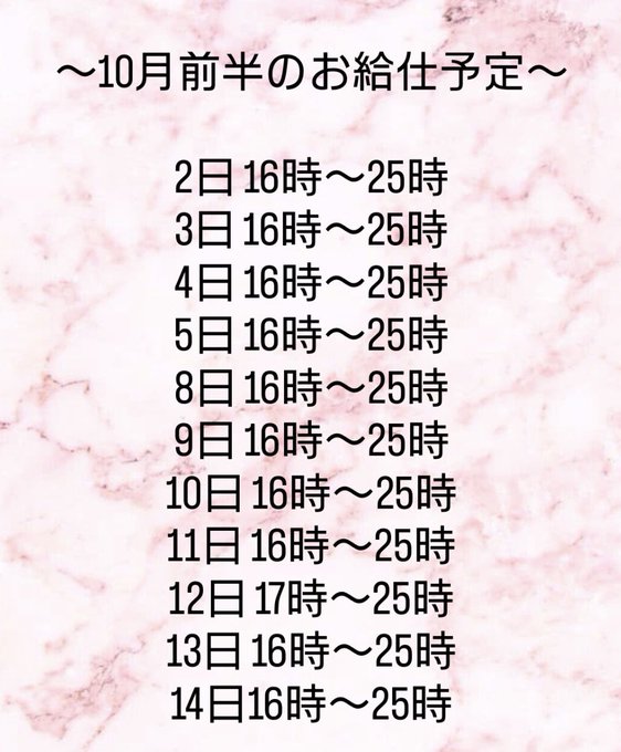 ゆあん☁️*@cp_yuan_·10月前半のお給仕予定です‼️ 誕生月なのですが特にイベントとかしないのでお祝いに会いに来てくれたらとても嬉しい🫶 お約束DMでお待ちしてます🌟211302