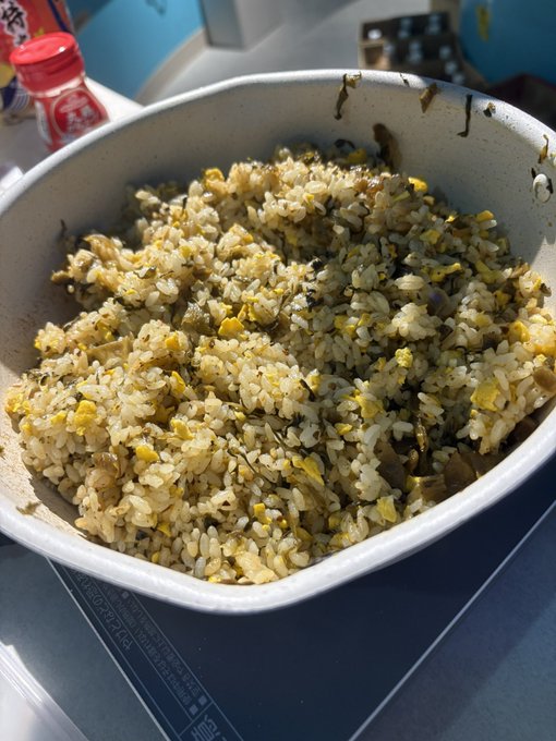 うらり(うなぎ)@kurage_urari·いてます!! これは昨日あもちゃんが作ってくれた 高菜チャーハン美味しかった🤤23251,055