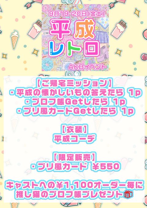 にあ@みけねこカフェ秋葉原@niamikecat·9月19日おやね🐾 本日もご帰宅またたびチェキリクステブロマイドありがとうございます🙇♀️ 久しぶりなムーンヒーリングエスカレーション🌙さん、ランキング1位嬉しい🥰ポイントすぐ溜まってる😲さん、たしかにちゃん付けで呼んでた💭さん、今日もイベ終わりの全然頻度多くないよ☺️さんなど✨ ⬇️引用にあ@みけねこカフェ秋葉原@niamikecat·9月19日16-いん💫 平成レトロ🐬🫧💖 気温最高すぎる>⩊< 一緒にプロフィール帳書こ!!! #みけねこカフェ #秋葉原 #またたび #チェキ #鯖缶 #メイドカフェ15247