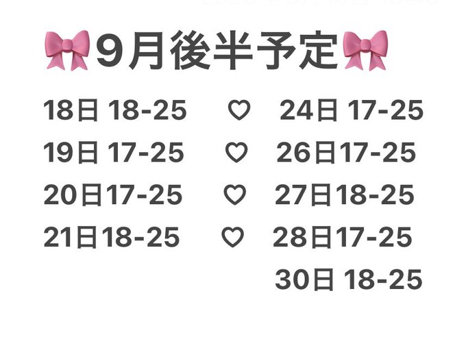 固定みこです🐈⬛💜@miko_myao·9月最後のお給仕よてい🐱♡ 9/19 18-23時 9/23 18-23時 9/24 18-23時 9/26 18-23時 もう9月最後なのやばい!!!!早すぎるよー😭😭😭121352