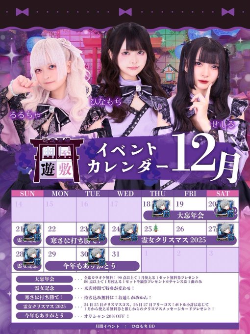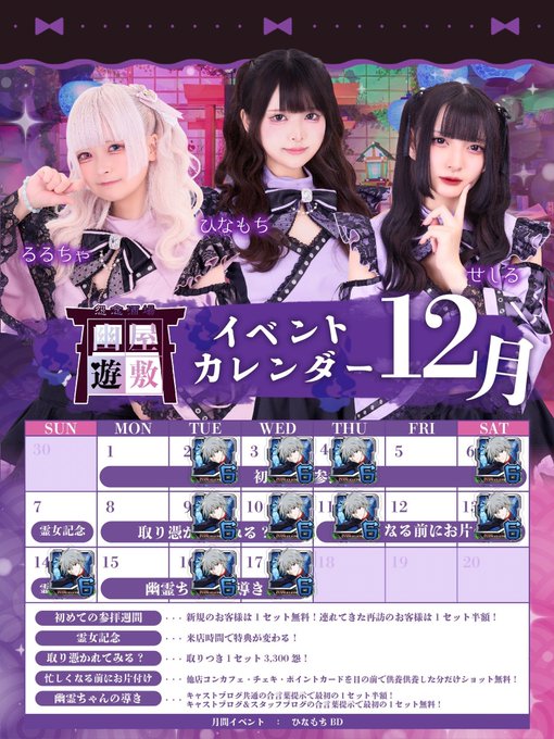 秋葉原・神田 幽遊屋敷〜霊女編〜秋葉原コンカフェくりす👻霊女@reijo_curisu·#くりすにあえるひ 12月後半もたくさんいます!!! 2025年最後だからたくさん会いにきて!!! お約束DMおまちしてます!!567