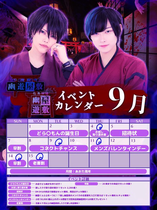 固定にぃと@幽遊屋敷@yuyu_neet__·9月下旬の浮遊予定ですや😸 少なくて申し訳ない😿 みんな会いに来てね #メンコン #コンカフェ #秋葉原320