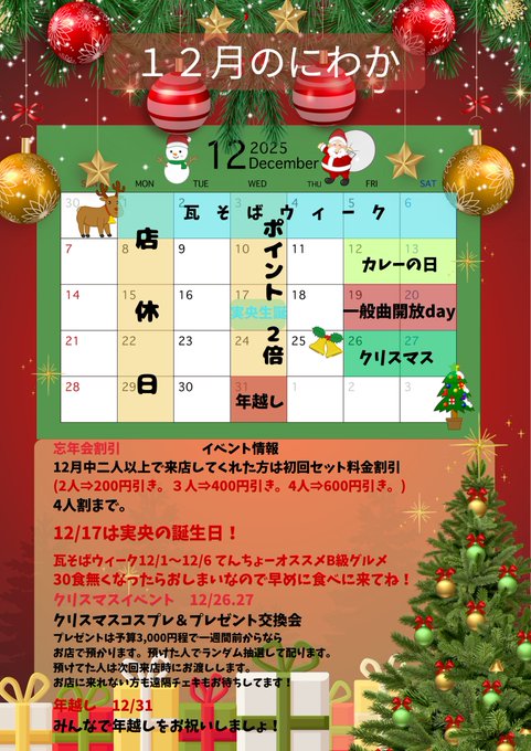 秋葉原・神田 シスターカフェ クラリスベール.秋葉原シスターカフェ クラリスベール|コンカフェバイト募集中✨@ClarisVeil·クリスマスイベントについてのお知らせです!! https://akiba-sister.com/event/3197/ 今年は2週にわたって開催🎅 ご予約についてご確認ください✨ ※今回、12月12日はご予約を受け付けません26500