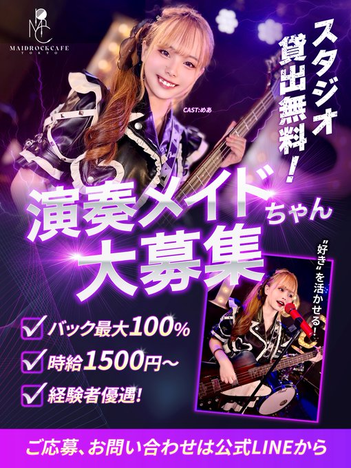 秋葉原・神田 メイドロックカフェ東京MRC TOKYOさんがリポストメイドロックカフェ東京@求人用@mrc_tokyo_job·╋━━ キャストさん募集 ━━━╋ 🗓シフト提出は半月ごと 🔰楽器演奏を始めたばかりでも大丈夫! 💴がっつり稼げる高時給! (時給1500円~+バック最大100%) -------------- ご応募https://lin.ee/TqD6Bqm (※高校生不可) #コンセプトカフェ #秋葉原 #バンド #バンド好き #邦ロック1246