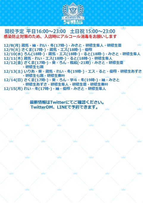 秋葉原・神田 私立輝羅星学院プリンス部固定私立輝羅星学院プリンス部@kiraboshiprince·【開校予定】登校予定を更新しました イケメンの男装部員がカフェでお待ちしています 入り口にアルコールジェルを設置してありますので、ご利用ください DM、LINEでカフェの予約が出来ます36357
