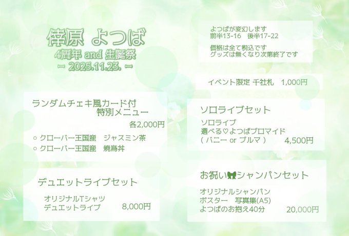 秋葉原・神田 忍者喫茶不忍カフェ秋葉原万世城秋葉原 忍者喫茶 不忍カフェ🥷ninja cafe@sinobazu_cafe·11月23日(日) 本日の忍者ちゃん🥷 ✨🍀よつば4周年&生誕祭🍀✨ 本日も皆様のご来城を忍者一同お待ちしております🙇♀️✨481,328