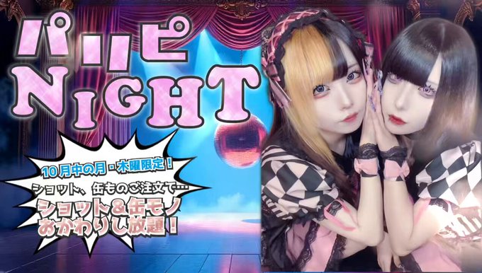 Alice in Silence🐰池袋コンカフェ@Alice_ikb·2時間今夜はパリピNIGHT実施中❕ 🐇本日の仔うさぎ🐇 15- 🩵音羽つむ @Alice_tumu_s2 姉妹店@NIGHTMARE_IKB の加糖ちゃん、15-17時でAliceへタイミー❕ #コンカフェ #池袋コンカフェ #秋葉原コンカフェ #歌舞伎コンカフェ引用Alice in Silence🐰池袋コンカフェ@Alice_ikb·9月29日0:10⚡️10月限定⚡️ 毎週月・木曜は… ✨━━━━━━┓ パリピNIGHT開催 ┗━━━━━━⚡️ ショット&缶モノがおかわりし放題🍻 飲み狂え、10月🐇 #コンカフェ #池袋コンカフェ #歌舞伎町コンカフェ #秋葉原コンカフェ12313