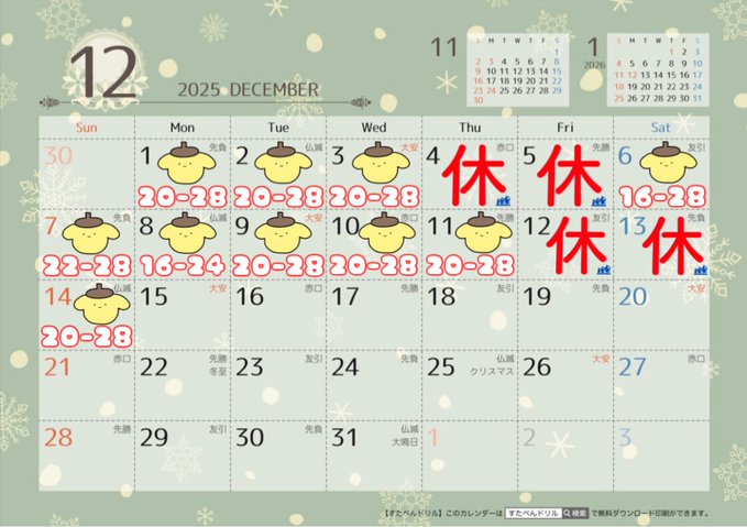 池袋・赤羽・板橋 めいどかふぇowl-あうる- 株)ジザイ固定🦊つきの💛@owl-あうる練馬店-@owl_tukino·🦊8日-14日のお給仕予定💛 ︎✿24-25日 🎄owlクリスマスパーティ🎅 ︎✿28日 owl忘年会✌😚🍺 ⚠️注意⚠️ 12日13日はお休みです🌙*゚ ご帰宅お待ちしてます🌟4168