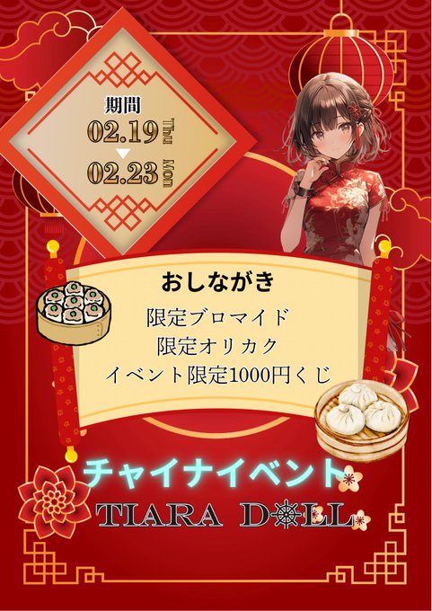 池袋・赤羽・板橋 TIARA DOLL (ティアラドール)固定👑TIARA DOLL👑 池袋東口のコンカフェ🖤@tiara_doll_·🏴☠️2月後半のお給仕予定🏴☠️ 2月19日〜1月23日 🐼チャイナイベント🐼🇨🇳 追加出勤は随時更新していきます 各キャストのSNSもご確認ください💟295