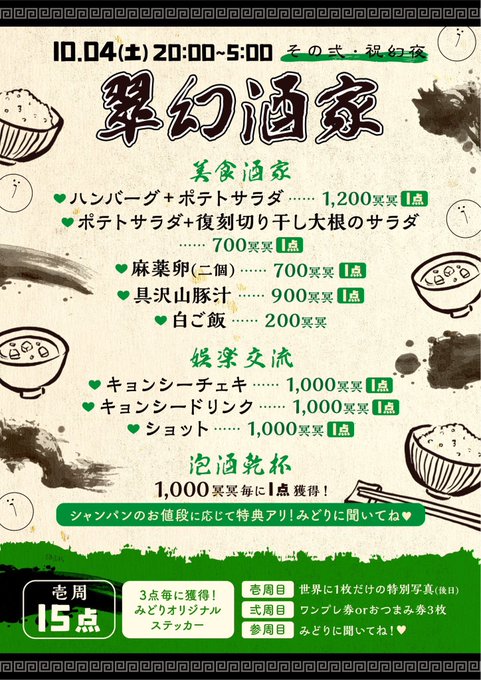 幽幻酒家👻池袋キョンシーコンカフェ@yuhgenshuka·👻幽幻酒家オープンしました👻 本日は我らが妖精さん🧚♀️みどりさんのバースデーEV✨今日も沢山の美食を用意してくれました✨沢山食べてみどりさんをお祝いしよう🎉 🍥本日のキョンシー🍥 👑みどり ⭐️みすと @mstYSWings ⭐️エリナ @erina_rosean ⭐️まと @Mato_ys ⭐️もこ @mocochan12_ikbさらに表示0:4423134