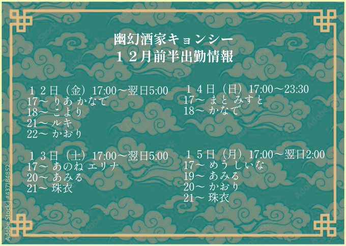 天国のカフェ cafe in blue heavenさんがリポストなぎさ@天国のカフェ@nagisa05410·9時間年末年始の詳細出ました!! 年内は26と27に居ます👋🏻 28はコスプレしてるから行けないんだ、ごめんね😭引用天国のカフェ cafe in blue heaven@cafe_blueheaven·10時間🪽年末年始の開天日🪽 2025年12月26日(金) 18:00-22:00(L.O.21:30) グランドオープン 2025年12月27日(土) 14:00-22:00(L.O.21:30) 2025年12月28日(日) 14:00-22:00(L.O.21:30) 2025年12月29日(月) 14:00-22:00(L.O.21:30) 2025年12月30日(火) 14:00-22:00(L.O.21:30) 2025年12月31日(水) 天休日さらに表示2194