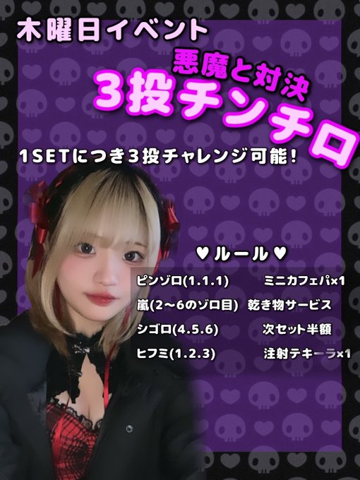 池袋・赤羽・板橋 小悪魔コンカフェ エビバデビル🖤赤羽No.1コンカフェ🖤エビバデビル (愛称:エビデビ😈)🖤@akumacafe·♥木曜日イベント情報♥ チンチロイベント今週も開催❣9