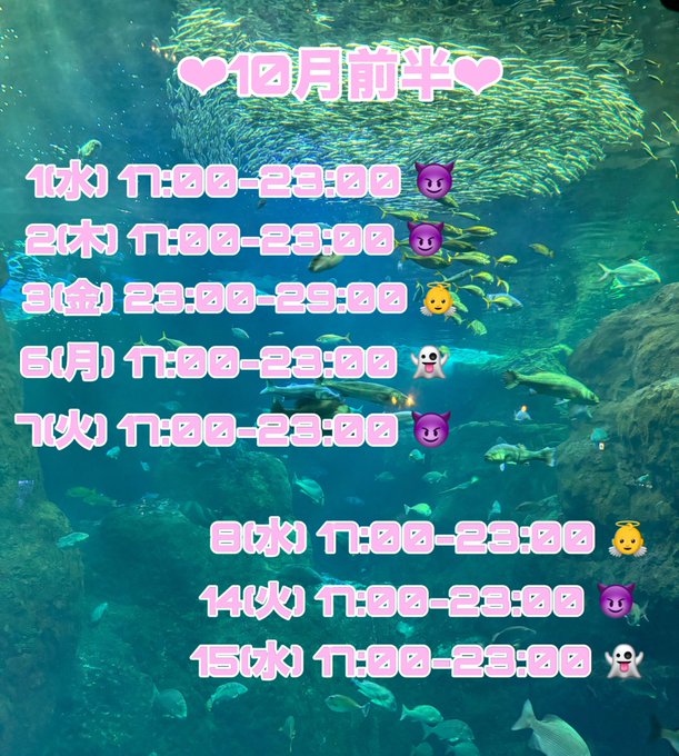 サキュバスシーシャWINGS😈池袋コンカフェ@WingsSuccubus·😈Succubus Angel Wingsオープンしてます😈 🖤本日のサキュバス🖤 ⭐️かなで@kanade__wings ⭐️りあ @riaw_ings ⭐️もこ @mocochan12_ikb 🌙あい @ai_SWAW 🌙ルキ @rawmeatyammy ☁️今日のオススメシーシャ☁️ 🐚🌊オーシャンMIX🌊🪸 営業時間⏰17:00~翌5:00 本日もご来城お待ちしております🎶0:1744346