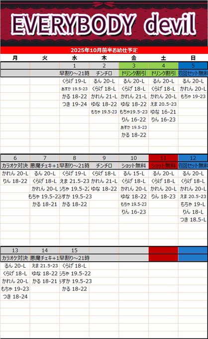 固定🖤赤羽No.1コンカフェ🖤エビバデビル (愛称:エビデビ😈)🖤@akumacafe·⭐️10月前半出勤情報⭐️ ❤︎イベント情報❤︎ キャストドリンク限定割引イベント 10/3.10/4 開催❣️ 10月はリステル祭り❣️ さらに! 月内はシャンパンタワー🍾 で次セットが無料⁉️1144