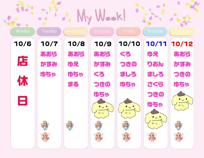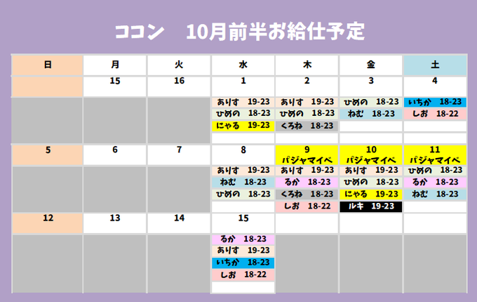 固定【 コンカフェ】ココン / 西池袋@cocon_maidbar·ココン10月前半のお給仕予定になります! 9~11はパジャマイベントを予定しております♪ #コンカフェ #池袋 #バー #メイド #bar #maid #Ikebukuro #Concafe #池袋ココン1178