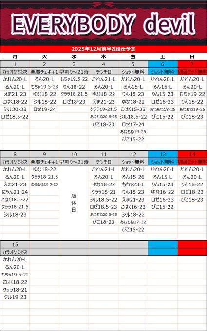 池袋・赤羽・板橋 小悪魔コンカフェ エビバデビル固定🖤赤羽No.1コンカフェ🖤エビバデビル (愛称:エビデビ😈)🖤@akumacafe·👿12月キャスト出勤&イベント👿 今年も12月周年イベント!! 小悪魔レース実施💡 貴方の推し悪魔を応援しよう!! ※詳細はキャストまで👿 🎄クリスマスイベント🎄 小悪魔がクリスマスコスプレ🎅 12月19.20日(金、土) ・初回セット料金でい放題!! 12月24.25日(水、木)さらに表示32152