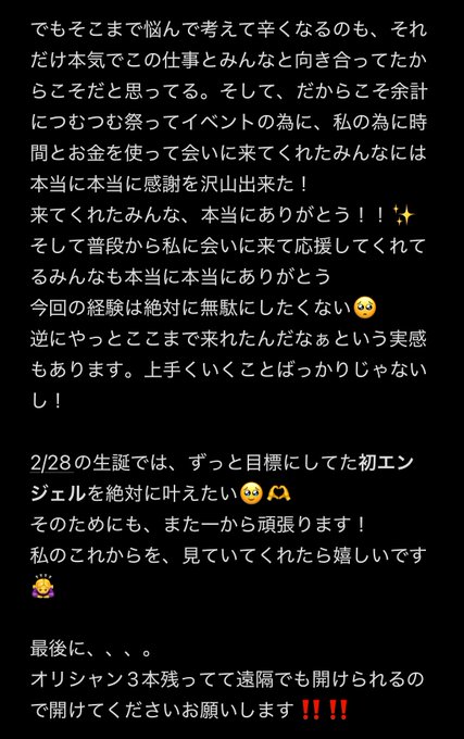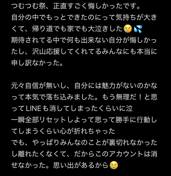 池袋・赤羽・板橋 Alice in SilenceAlice in Silence🐰池袋コンカフェさんがリポストつむ 2/28(土)生誕@Alice_tumu_s2·私の本心ツイートですよかったら見てください🙇♀️ 正直ほんとにきつかったけど、なんとか立ち直れた🥺💦キャストもボスも心配させてしもた泣ごめんなさい!!! 明日から12月だ!反省生かして前向きに頑張るぞー☺️👍3219489