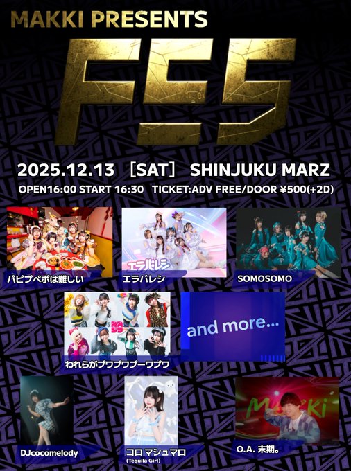 池袋・赤羽・板橋 Cafe&Bar 推しが可愛いころ@ 推しが可愛いさんがリポスト末期。@kanao961·【超ばかでか告知】 ありえん最強のメンバーにご出演頂けることになりましたッ 末期と関わった皆様全員来て欲しいです!!!!明日21時チケ発!! 2025年12月13日(土) @新宿MARZ 16時OPEN TICKET:https://tiget.net/events/435388 ADV:FREE DAY:¥500 SPECIAL TICKET:¥2,500 #末期FESパピプペポは難しい【公式】さんと他5人6891281.8万