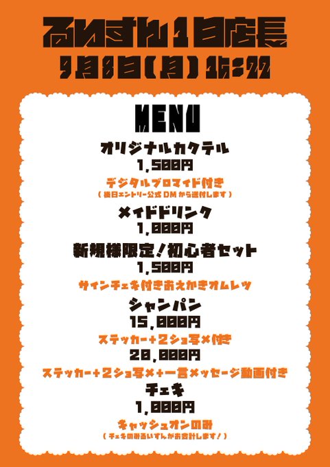エントリー池袋店@entrycafe·オープンしました! 本日の1日店長 15:00~22:00 るいすんさんです! 本日のメニュー↓↓↓134234