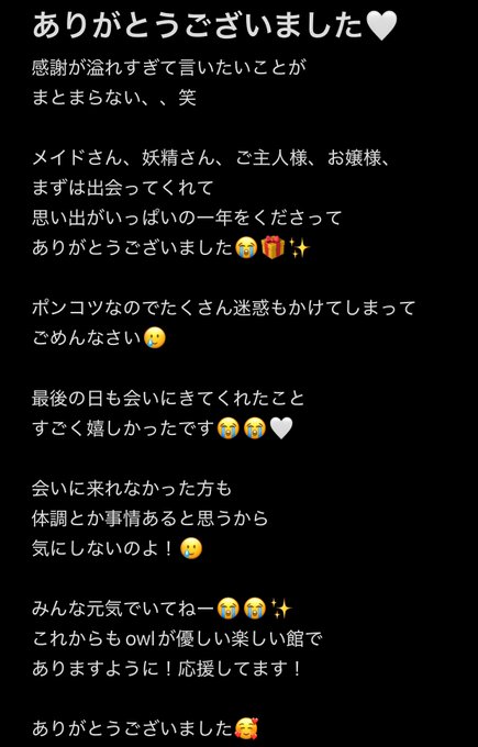 池袋・赤羽・板橋 めいどかふぇowl-あうる- 株)ジザイくろ@owl-あうる練馬店-@owl_kuroro·チェキお届けはまた 報告しますん🥰 文才無さすぎて うまく伝えられないけど、、 ありがとうございました😭🤍🤍4418301
