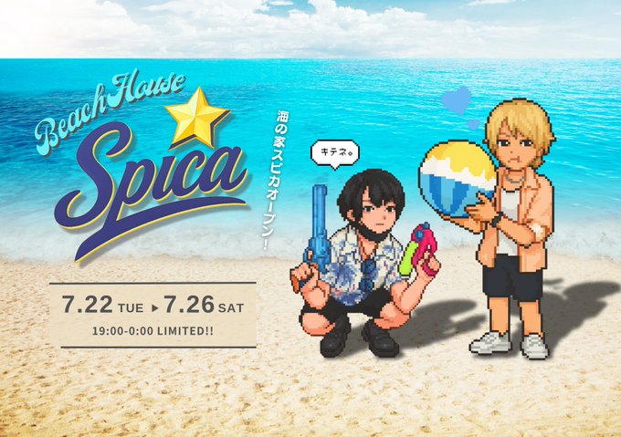 固定池袋男装バー💫Spica@Spica_Ikebukuro·𝘯𝘦𝘹𝘵 𝘸𝘦𝘦𝘬 海の家「Spica」期間限定OPEN🌟 ・限定フード、ドリンクあり〼 ・キャストはチャラ装いでお出迎え。 7.22 ▶︎ 7.26|19:00–0:00 #男装コンカフェ #Spicaイベント1631,030