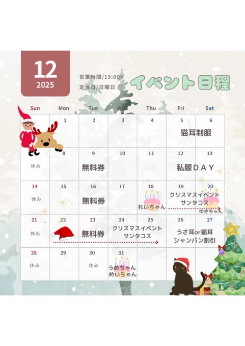 池袋・赤羽・板橋 池猫 ~池袋の猫たち~固定れい@rei_15i·返信先: @rei_15iさん12月のイベント⛄️ クリスマスとお誕生日あります✨7