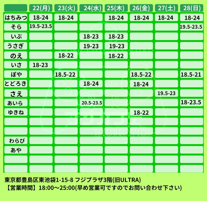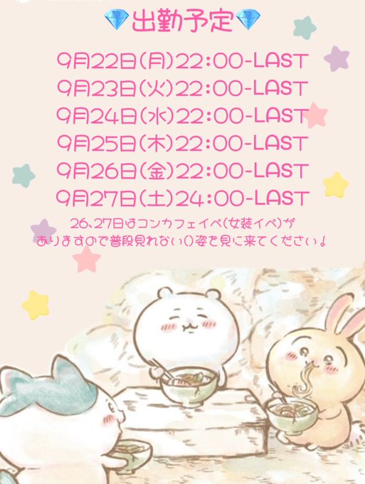 つき@moon_o0_x·9月22日明日は祝日だね➰🎶 てことはつまり愛に来るしかない♡♡ コンカフェ営業くださいの方、コンカフェはじめての方も大歓迎です(>_