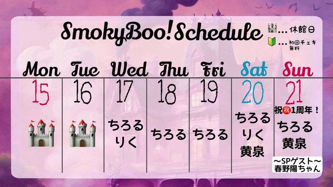 黄泉@Smoky Boo!さんがリポストSmoky Boo!👻キャスト大募集@SmokyBooX·返信先: @SmokyBooXさん9/19 最新版の予定表はこちら13205