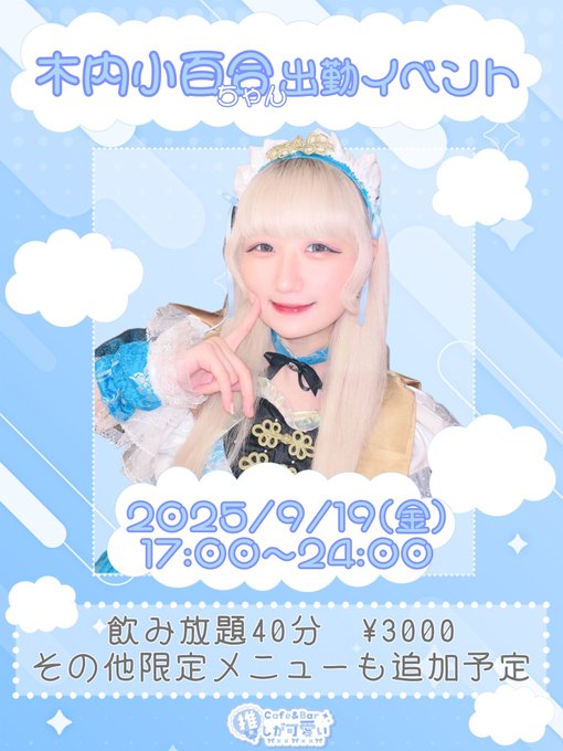 ころ@ 推しが可愛い@56pocha·9月19日本日こちらです〜!! よろしくお願いします!!引用Cafe&Bar 推しが可愛い【池袋】@oshikawa_ikb·9月18日🩵木内小百合ちゃん 出勤イベント🩵 2025/9/19(金) 17:00〜24:00(L.Oは23:30) イベント限定の特別セットメニューになります! ゲスト目当ての方は通常の新規セットは適応外になりますのでご了承ください。 一部メニュー遠隔も対応しております! 注文サイトの選択からゲストを選んでください x.com/oshikawa_ikb/s…さらに表示17686