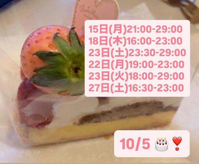 めいめい@あのメモ@meimei_anomemo·今月残りの予定です! 10月前半は少なめだとおもうのでたくさん会えたら嬉しいです( ; ; )! ついでに誕生日も近いです。473