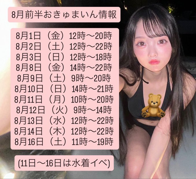 固定きゅま@あのメモ@kyuma_anomemo·8月前半のおきゅまいん情報です🧸 会いに来てください(⸝⸝o̴̶̷᷄ ·̭ o̴̶̷̥᷅⸝⸝) あのメモでお待ちしてます! #あのめも #あのメモ #池袋 #池袋コンカフェ #女の子 #コンカフェ #コンカフェ嬢 #コンカフェ営業 #コンカフェ営業 #コンカフェ営業ください #コンカフェ嬢と繋がりたい18253