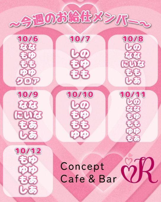 前橋コンセプトカフェ&バーR@ccb_r_maebashi·🫶🏻今週の出勤情報🫶🏻 いつもご帰宅ありがとうございます!!! 今週のお給仕メンバーをお知らせいたします📢 みなさまのご帰宅をお待ちしてます♡ ※出勤メンバーは変更になる場合がございます。 #コンカフェ #群馬 #前橋16