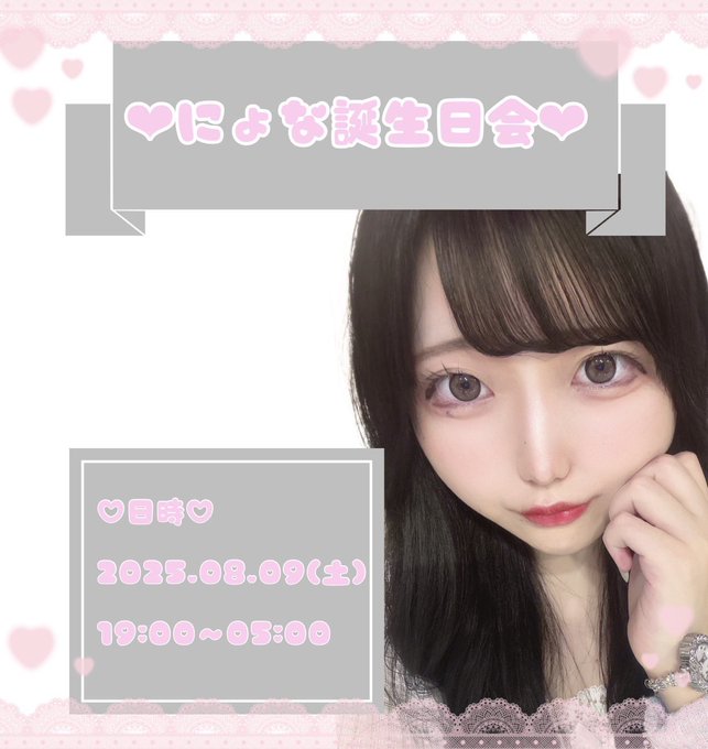 固定にょな@melcafe_nyona·8月9日はにょなの生誕‼️ みんなぜーーーたいにくること🫵🏻🌟‼️ 🍾オリシャン予約3日(日)までです🍾 予約必須だからみんなおねがい20歳…盛大に…祝ってほしい…;; 8月後半みやぎいるから全然出勤ないです! 前半きて絶対( ・̆ ・̆ )217220