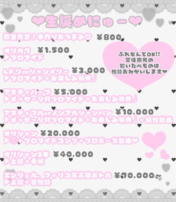 るびぃ🍒8.10.ばーすでー🎂@chariluP_ruby·7月30日え、あした(7/31(木))で締め切るよ?? DM来ないってことはもしかして 誰もオリシャン買わない感じ…? え、、、??? やっぱ一方的な好きだったのかな… (病み期)引用るびぃ🍒8.10.ばーすでー🎂@chariluP_ruby·7月16日🍒詳細どどーん🍒 熱中症対策しっかりしてこ🎐✨ ってことでオリシャンセットは、 あつ〜いこの季節に役立てて欲しい 実用的な🌻サマーセット🌻 セットメニューで一気にグッズがもらえ ちゃうちょいお得なセットとなってます💕 アルコール:¥35,000/ノンアル:¥30,000 ※ご予約はるびぃまで😉 x.com/chariluP_ruby/…14722