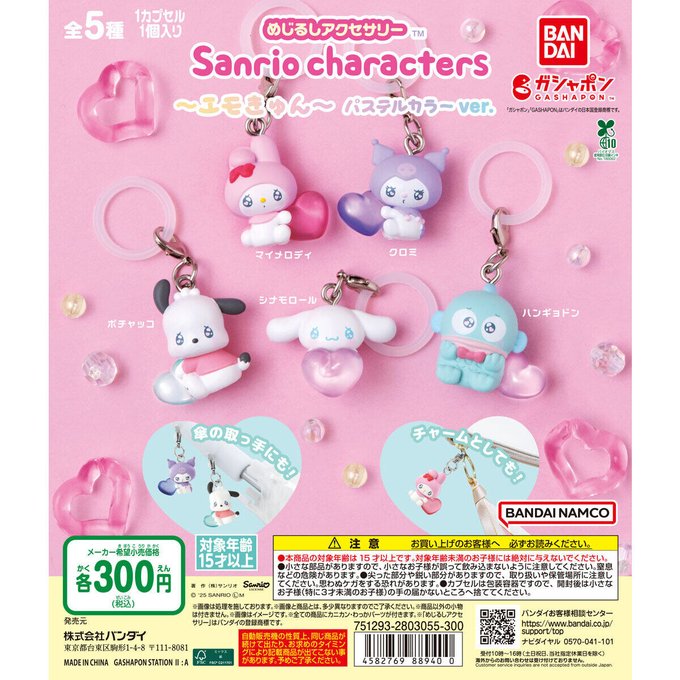 あむにゃ🍥@水戸コンカフェLさんがリポストサンリオ推し活部🌈@sanrio_oshikatu·\⚠️新作カプセルトイ【予告】📣🆕/ 「めじるしアクセサリー サンリオキャラクターズ~エモきゅん~ パステルカラーver.」 8月第2週のカプセルトイにて登場🥹🩷 わああああ、パステルカラーverきたああああ🥹 優しい色味と表情に癒されちゃうね🥹🩷 これも入荷日分かったらお知らせするね📣さらに表示21,3851万57万
