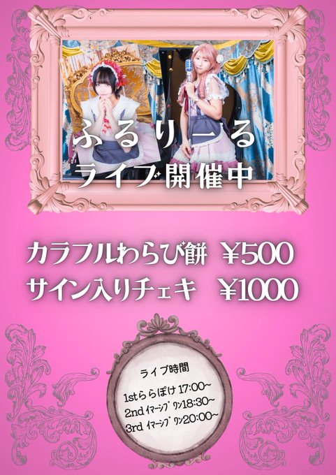 るびぃ🍒8.10.ばーすでー🎂@chariluP_ruby·8月3日本日8/3のふるりーるライブ第一部は #ららぽけっと で17:00〜 @kaiyoshinobu のみなさんと一緒に ライブします✨ 第二部:18:30〜・第三部:20:00〜 昨日と演奏場所が変更となっております のでお間違えなくお集まりください♡ #みやまつり #宇都宮 #新人 #アイドル #ライブ @fleurir_0803引用運命はるか🥀ふるりーる@fleurir_harukaS·8月3日おはようございます!!!!宮まつり2日目ふるりーるCafe開店します🥰本日の目玉商品はるびぃパフェはもちろんきらきらなわらび餅です🍨✨ライブも17:00~ららぽけっと18:30~イマーシブワンで行っております🥳チェキもやってます:;(∩´﹏`∩);:お待ちしております🙇♀️114550