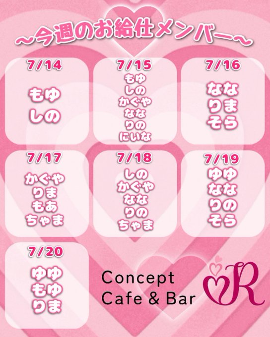 なな@前橋コンカフェR@ccbr_Nana·7時間出勤簿確認ヾ(*´∀`*)ノ引用前橋コンセプトカフェ&バーR@ccb_r_maebashi·7月16日🫶🏻今週の出勤情報🫶🏻 いつもご帰宅ありがとうございます!!! 今週のお給仕メンバーをお知らせいたします📢 みなさまのご帰宅をお待ちしてます♡ ※出勤メンバーは変更になる場合がございます。 #コンカフェ #群馬 #前橋49