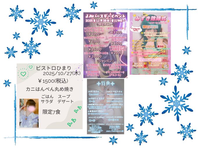 栃木・宇都宮 マジカルドール固定マジカルドール【公式】@magicaldoll2020·マジカルドールは25日(火)・26日(水)お休みです 27日(木)は19時オープン‼︎ ビストロひまり開店🍽️ カニはんぺんまるめ焼きセット🦀 28日(金)よみちゃん誕生日祝い🎂 12/7(日)みずきちゃん除隊式 ご予約お待ちしております🫶 #宇都宮市 #コンカフェ493