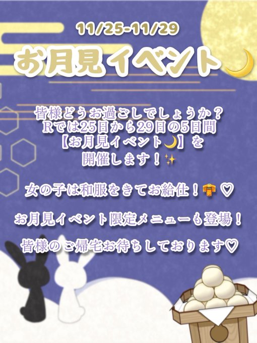 群馬・高崎 Concept Cafe&Bar R前橋コンセプトカフェ&バーR@ccb_r_maebashi·本日も沢山のご帰宅ありがとうございました! お月見イベント開催しました〜!🌕🫧 沢山のご主人様と一緒にお月見できてしあわせでした🐰✨ 明日もひきつづき開催してるので、 遊びにきてください!お待ちしております💛 11/26お給仕メンバー 🍡しの 🍡なな 🍡さゆ #コンセプトカフェアンドバーr129