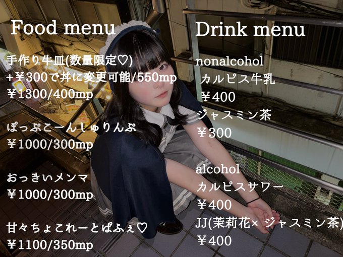 栃木・宇都宮 マジカルドールみかみさんがリポスト🫧みずき@コンカフェ屋さん!@mgdoll_mizuki·14時間〜オリシャン一部変更のお知らせ〜 オリシャンは、初期メイドみずきか春麗みずきの2種類からお選びいただけます!(ご予約の際にお伝えください) デキャンタとオリシャンの予約は、明日22日で締め切ります! DM、お電話、みずきに直接でもOKです☺️ お早めにご予約お願い致します😭✨ 画像はこちら⬇引用🫧みずき@コンカフェ屋さん!@mgdoll_mizuki·11月13日〜お知らせ〜 12/7(日)をもちまして、除隊させていただくことになりました! 約3年半の集大成を見納めに来てください😢✨ お問い合わせ・ご予約等は、リプかDM、お電話で!(028-637-0120) よろしくお願いいたします🤗 当日は、遠隔のご用意もあります! #コンカフェ #宇都宮 #マジカルドール424588