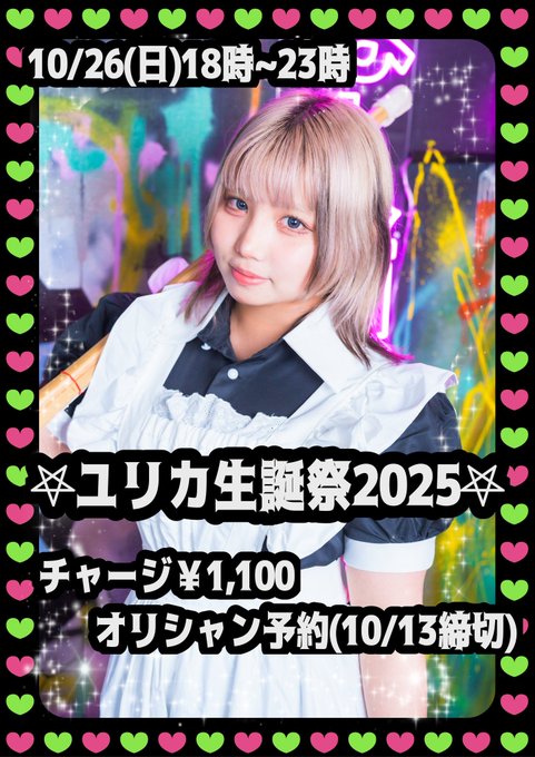 川崎・横浜・関内 不良メイド喫茶・Bar黒月横浜本店ユリカ🍼🩶 不良メイド喫茶・Bar黒月|横浜コンカフェ|求人(キャスト募集)@Urika_kurotsuki·10月24日可愛い衣装着るから見に来て〜❗️❗️👀⁉️ 人生初の生誕祭祝って欲しい❗️❗️❗️ 26日❗️18時からだよー❗️❗️ 待ってるよー❗️❗️引用不良メイド喫茶・Bar黒月🐈⬛🌙横浜本店|横浜コンカフェ|求人(キャスト募集)@kurotsuki_bay·10月22日今週末のイベントは… 2025年10月26日(日) 『ユリカ生誕祭2025🐈⬛💖』 ⌚時間 18時~23時 🎟チャージ ¥1,100 ぜひユリカの誕生日をお祝いしに来てくださいね💫3243