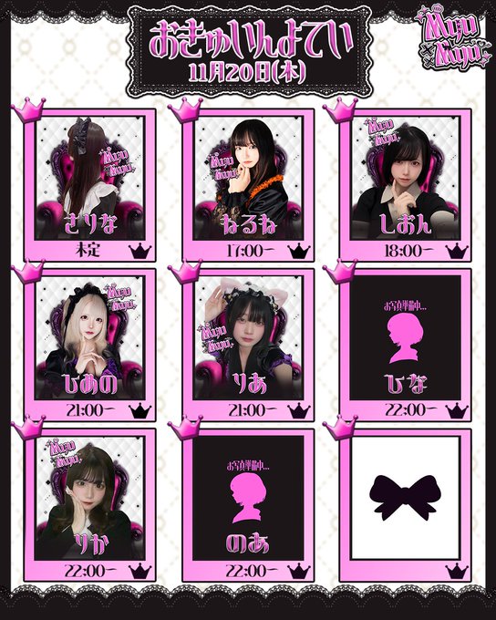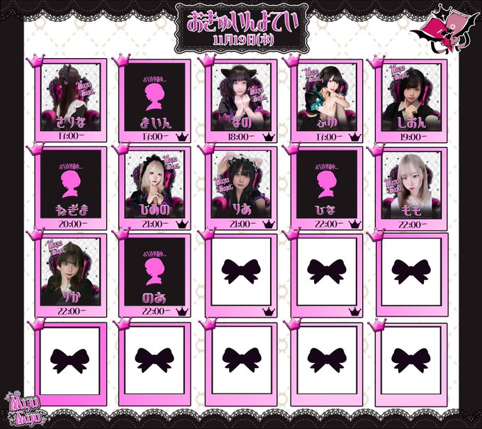 茨城・水戸 CONCEPT CAFE&BAR L水戸コンカフェ&バーL@ccb_l_mito·本日もご来店ありがとうございました💘✨✨ 🎀 11/19出勤メンバー 🎀 (※変更される場合🈶) 21:00~ ♡りつこ ♡なの ♡りさ 22:00~ ♡はな 沢山のご来店お待ちしております꒰ᐡo̴̶̷̤ ̫ ᴗ͈`꒱ෆ #コンセプトカフェアンドバーl 17