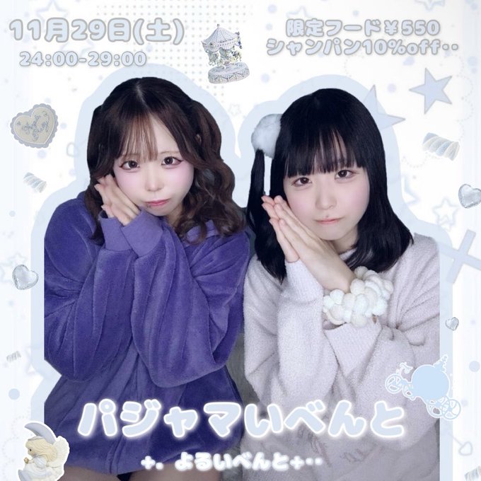 群馬・高崎 Concept Cafe&Bar i高崎コンセプトカフェ&バー i@ccb_takasaki_i·本日はぱじやまイベント1日目🐑💤 ということで、女の子が自前のパジャマでのお給仕でした🌙 ずーっとわいわい晩酌ができてたのしかったです🎶 ぜひ明日もお待ちしております(՞っ ̫ _՞)ᐝ 11/19のお給仕めんばー💌♥️ ❤︎れお ❤︎ぽめ ❤︎らむね ❤︎とあ2112
