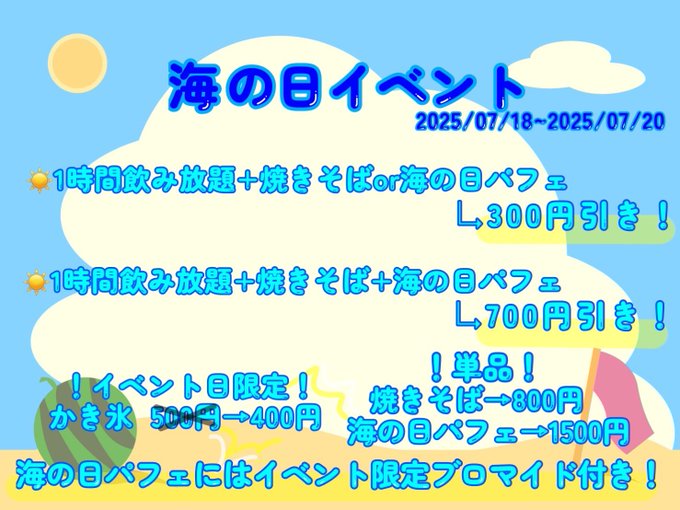メイド居酒屋まめや 千葉店さんがリポストてん@1Oo_mameya·7月21日火曜日ー🌟引用メイド居酒屋まめや 千葉店@mameyahonchiba·7月20日メイド居酒屋まめやお給仕予定 7月🏖️ 21月-げん ゆあ つばき ゆじゅ❤️カラオケDAY! 22火-しゅう てん げん いぶ 23水-あき みー しろ まろ❤️あきミニライブ! 24木-みー しろ うに いぶ❤️アロハDAY! 25金-りん ちる 26土-しゅう ちる しろ つばき メイドさん募集はこちら✨https://x.gd/PpzOx15463